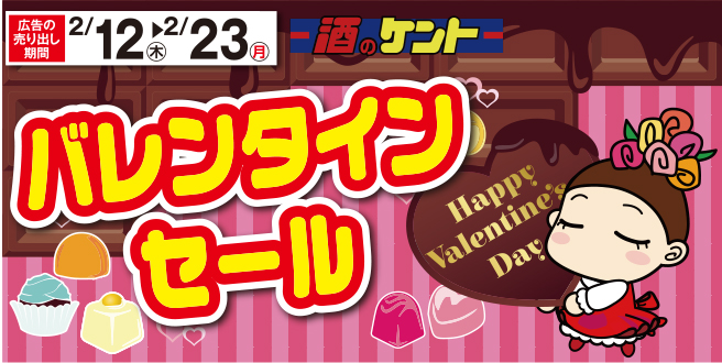 酒のケントでは2026年2月12日(木)~2月23日(月・祝)まで、バレンタインセールを開催いたします!