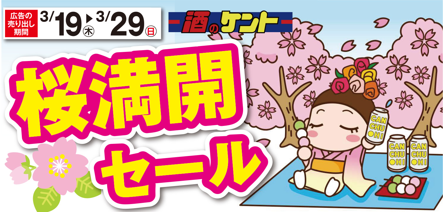 酒のケントでは2026年3月19日(木)~3月29日(日)まで、桜満開セールを開催いたします!