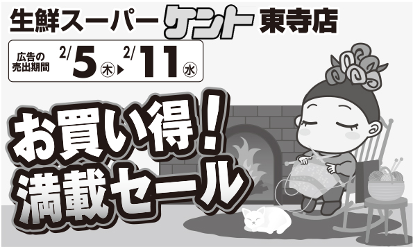 生鮮スーパーケント生鮮スーパーケント東寺店★お買い得!満載セール開催!! 2026.02.04 生鮮スーパーケント東寺店では2026年2月5日(木)~2月11日(水)までお買い得!満載セールを開催いたします。お菓子☆お酒☆飲料☆がお買い得!チラシはこちらから。 Tweet 冬のあったかセール開催!!!